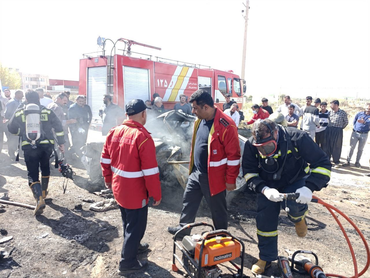 در محور بوکان – میاندوآب، برخورد دو دستگاه خودروی سمند منجر به مرگ راننده هر دو خودرو شده است.